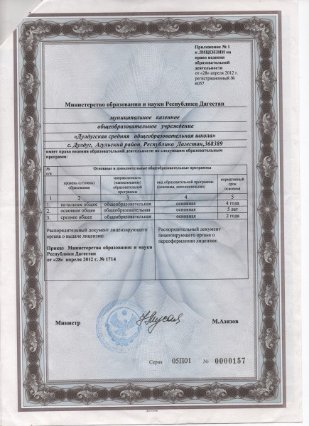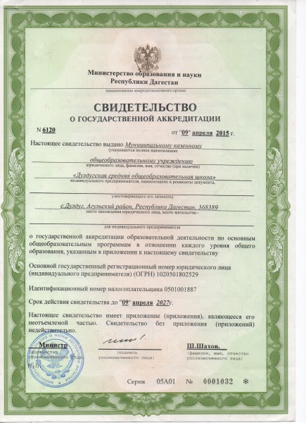 | Адрес местонахождения образовательной организации* | 368389,с.РД,Агульский район,с.Дулдуг |